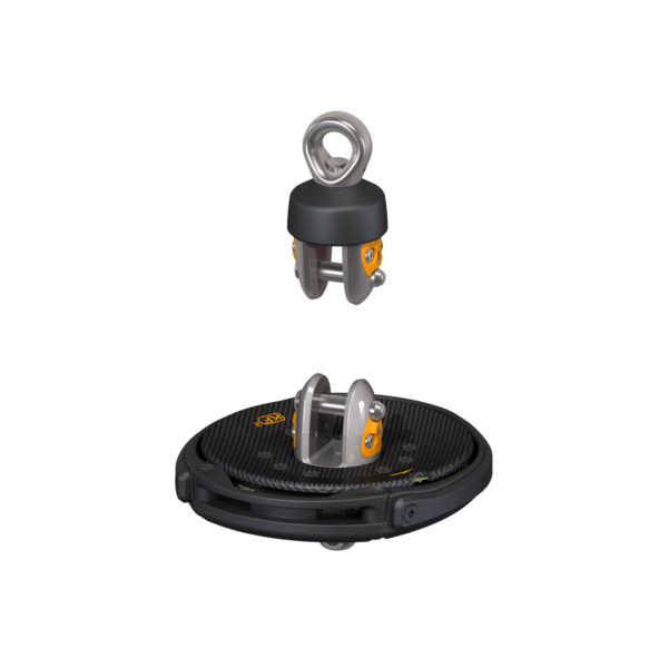 The KFX Structural furler is a variation of our new range of KF V3 furlers. This is the 3rd version since our creation in 2003. You will recognize this furler among all : it is the only one with a carbon / Kevlar®continuous line wheel ! Also sometimes called “stocker”, a structural furler integrates the main forestay. It is therefore a fixed furler. It is a piece of equipment that can be found on the vast majority of racing yachts or on high-performance cruising catamarans. A furler is on average 8 times lighter than a conventional reefing furler and does not allow the use of a partially furled sail. KFX Structural furlers are fitted as standard with a carbon / Kevlar®continuous line wheel, a reinforced ABS drum protected by our K Krok neoprene protection, reliable and durable stainless steel fork, secure fittings (pins screwed / glued or lashing eyes), our remote locking system for the continuous line wheel and a swivel also protected by its K Krok. All KFX can be ordered as a single line version. The KFX furlers can be supplemented by V3 furlers for other headsails and are available in 3 versions : Racing and Classic with different finishes but always in the same spirit of performance. There are many options available to make it unique and perfectly suited to your needs. For more than 15 years, Karver has been shaking up the market by regularly offering new innovations. We are at the origin of the remote locking systems of the continuous line wheel, of the system of quick furling line installation, captive fast pins, friction sheaves with fast pins, carbon drums, … and we are above all recognized for offering the lightest and most compact furlers on the market. This is the reason why we are very present aboard offshore racing yachts and aboard the most efficient yachts such as the Imocas which are equipped with more than 70% of our furlers. This 3rd Karver’s generation of furlers definitely places us in a pioneering position. The precursor … is Karver.