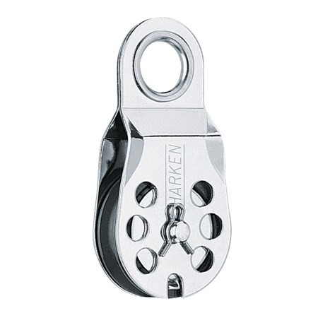 Lightweight, low-friction wire blocks carry wire halyards and high-strength control lines on boats of all sizes. High-load composite bearings carry axial loads. Hard Lube-anodized sheave for strength and corrosion resistance. 25 mm (1") wire blocks use low-friction thrust washers. 38 mm (1.5") and 51 mm (2") wire blocks feature sideload balls between the sheave and the sideplate to minimize friction from unfair leads. 466 features a forkhead and becket making it useful for vangs, halyards and control lines.