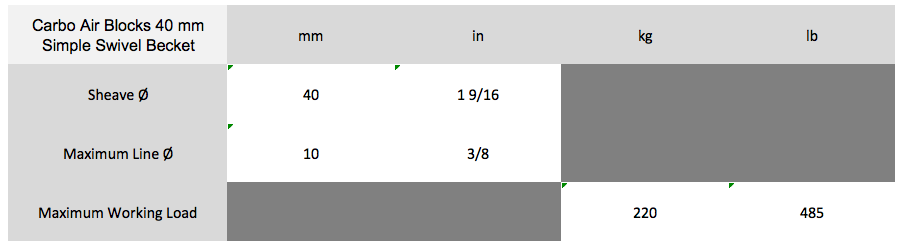 Low-friction Carbo Air blocks are lightweight, strong, reliable—and affordable. Companions to our popular Harken Big Boat blocks, these small, compact blocks have very high working loads for safe, easy trimming. Lightweight nylon resin sideplates replace stainless steel straps found in Classic blocks. Densely packed glass fibers reinforce resin for strength.
