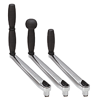 Classic chromed or natural polished bronze handles, 250 mm long. Three different grips are available: the single, the double and the new “ball-grip”. The grip is covered with rubber to give a firm hold and runs on two ball bearings to increase its efficiency (single-grip and ball-grip only). All the models are available with or without the lock system which automatically locks the handle on the winch. To refer to the “no lock” version add /NL to the code.