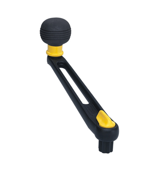 Extremely light black aluminium handles in two sizes: 200 mm (8 inches) and 250 mm (10 inches). Three different grips are available: the single, the double and the new “ball-grip”. The grip is covered with rubber to give a firm hold and runs on two ball bearings to increase its efficiency (single-grip and ball-grip only). All the models are available with or without the lock system which automatically locks the handle on the winch. To refer to the “no lock” version add /NL to the code.