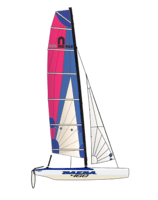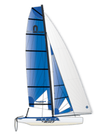 A simple, high-quality performance catamaran for two persons. It is the baby of the Nacra family, perfect if you are just learning about catamaran sailing. However, nothing about this catamaran is standard. It is a real beauty with its clean hull lines. The beams are recessed into the hulls, making the boat stiffer. And the high buoyancy keeps you on top of the water. As with all Nacra boats, the trampoline is made of mesh polypropylene, which ensures that water drains quickly. If you’re just starting out sailing a catamaran, the trapeze can be pretty exciting. Nacra has made it safe and easy with sure-footed, non-slip areas on the side of the hulls. All Nacra sails are designed by Performance Sails to give you many years of enjoyment. The Nacra 460 has an MNX mainsail, fibre reinforced monofilm, and a Dacron jib. The jib is sheeted to the front of the beam, so you don’t have the hassle of lines and blocks on your trampoline. Like other Nacra’s, the 460 comes with kick up rudders, a skeg hull, and Harken working gear.
