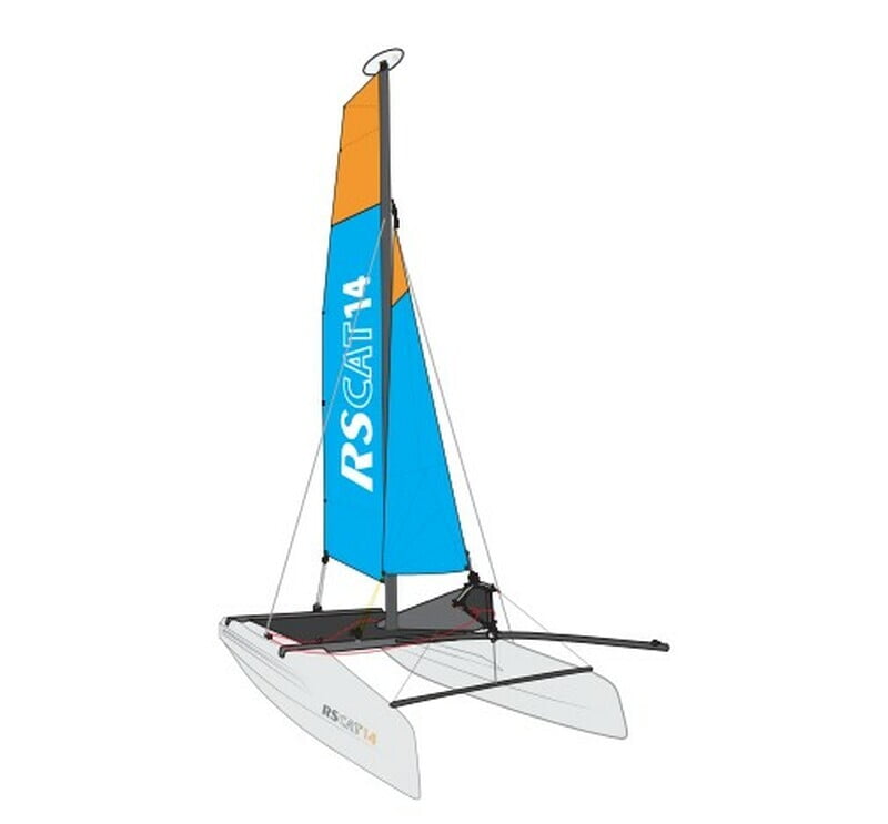 This boat takes the enjoyment and handling associated with beach cats to a new level. Stiffness and balance defy the cost-effective durability of the RS CAT14_s construction _ making the boat perfect, not only for training and recreational sailing, but also as a true performance pathway class. We_re excited _ and we think you will be too! The design protected system for joining the beams to RS CAT hulls gives increased stiffness compared to other rotomoulded catamarans, with the added bonus of allowing the boat to be disassembled quickly for storage or transport. Durability : Convenience : Excitement _ the hallmarks of the RS CATs. Stiffness and manoeuvrability _ sparkling performance & easy handling _ Novice to expert capabilities for young and youthful sailors _ Crisp, easy handling from the stiff platform leads to exciting performance _ Practical features to make sailing convenient and fun _ High buoyancy hulls give reserve stability and forgiving handling _ Concave deck creates secure sitting area _ Lift & lock _ simple & secure rudder system _ Designed by innovative multihull expert Jo Richards and the RS development team Singlehanded or with crew _ Exciting single-handed _ great for two youngsters or a small groups _ Blast across the bay _ performance pathway _ One, two or three sails to suit experience and performance level aims _ Efficient gennaker chute system for simple hoists & drops Storage and transport convenience _ Fast assembly & separation allows storage in restricted space _ Quick to rig _ simple and robust _ Practical moulded-in handholds make moving the boat easy on shore Greatest durability _ lowest maintenance _ NEW _ Hull & beam securing system without holes through the skin of the boat _ no sealant required _ Beam and shroud bolts secure into stainless-steel bars in channels on either side of the hulls _ Exceptionally strong, simple and fast assembly _ just 15 minutes using only one spanner _ RS Comptec PE3 construction_ state of the art three layer rotomoulding system _ Toughest outer skin _ middle foam layer for stiffness _ strong inner skin _ RS process leads the way & enables additional thickness in high load areas _ Reduced overall weight for better sailing _ every RS offers the best performance and most rewarding handling _ Built in buoyancy from thick foam layer _ Strongest fittings attachment _ through-bolted rudder systems _ Super-strong RS transom & rudder fitting structure _ Virtually maintenance free Safety features _ Toe straps above and below tramps to assist capsize righting _ Capsize righting line in under-tramp stowage bag _ Knife stowage under tramp _ Recesses in aft decks reduce volume and make it easier to _sink_ a stern and right the boat from inversion RS CAT14 Club _ Mainsail only _ simple set-up RS CAT14 S _ Mainsail _ Jib _ Single trapeze RS CAT14 Accessories _ Launching wheels _ Road trailer _ Carbon fibre tiller extension _ Mast head float _ Wind indicator _ Jib pack _ Gennaker pack