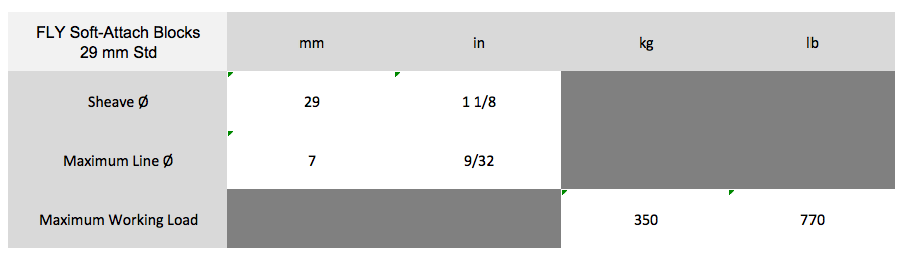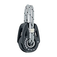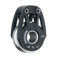 Harken soft-attach Fly blocks are designed to provide strength without mass, providing sailors with big power in a low-aero package. Designed specifically for high-tech line, these efficient blocks have an incredible working load for their small size. Fly blocks are perfect for use on foiling dinghies and sportboats and for vang cascades and backstay systems on Grand-Prix racers.