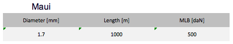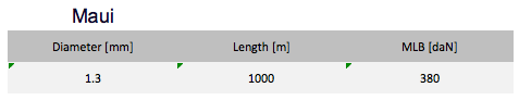 Maui lines are the true superstars among the kiteline assortment. Easy to splice due to 12-braid technology, high breaking load and low elongation due to the Dyneema® SK99 fiber. Furthermore a smaller diameter at same breaking load in comparison to Dyneema SK78 products is possible without compromising on safety.