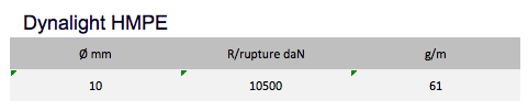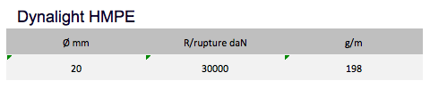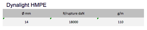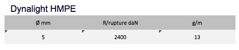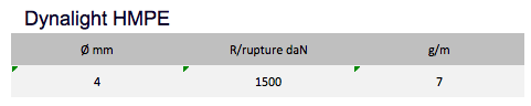 The Dynalight Ref. 13 features a breaking strength close to steel. Very supple and very stable under load, it shows a great resistance to fatigue, flexing and abrasion.