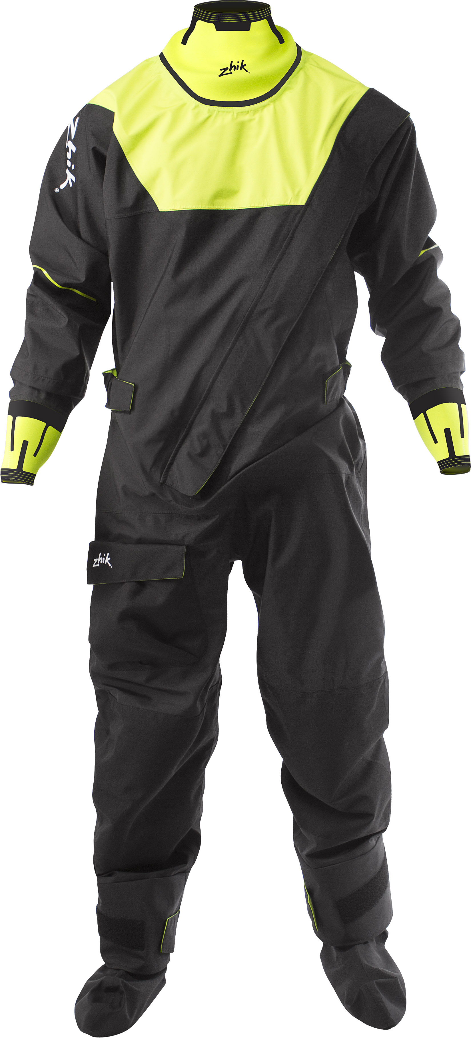 The Zhik drysuit is the culmination of technologies introduced for testing during the Volvo Ocean Race, adapted into a versatile garment for competitive sailing across a range of disciplines. The result is an agile drysuit that avoids the bulk of traditional drysuits. Fewer seams make it both lighter and more durable, as well as more resistant to leakage due to seam failure. Neoprene neck and wrists seals for comfort & durability and our Oxford abrasive panels offers high durability in the rear and knee panels.